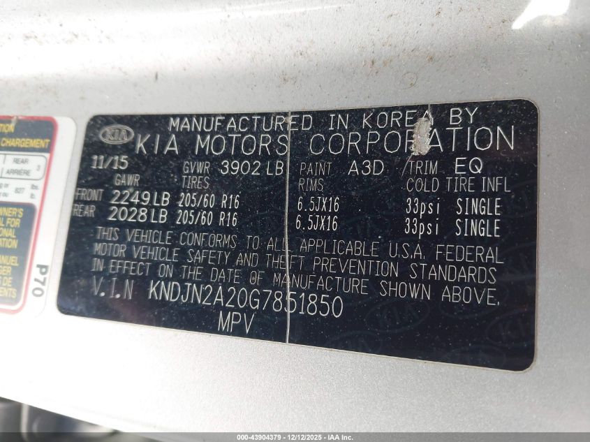 2016 KIA SOUL - KNDJN2A20G7851850, колір - Сірий, 1.6, Бензин, Передній привід із США