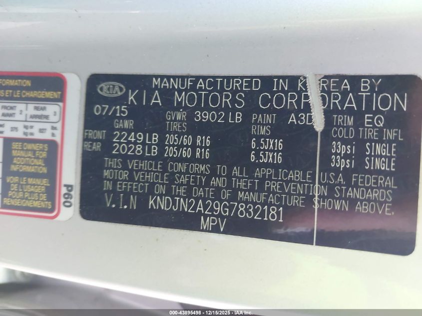 2016 KIA SOUL - KNDJN2A29G7832181, колір - Срібний, 1.6, Бензин, Передній привід із США