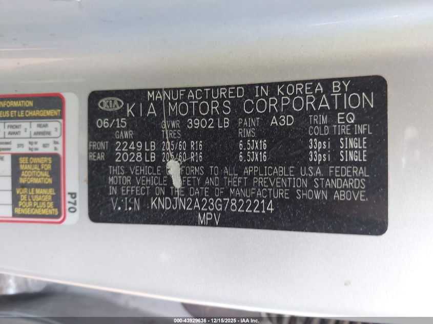 2016 KIA SOUL - KNDJN2A23G7822214, колір - Срібний, 1.6, Бензин, Передній привід із США