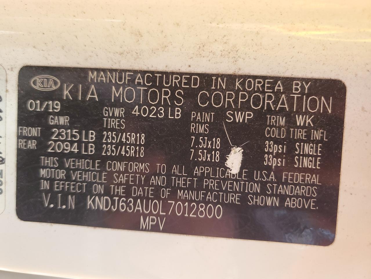 Колір БілийЦиліндри 4VIN KNDJ63AU0L7012800Стан Заводиться та їде (перевірено)Ушкодження Передня або задня