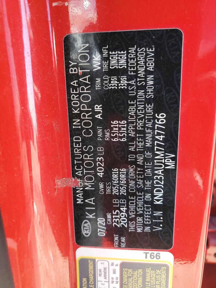 2021 KIA SOUL - KNDJ23AU1M7747766, колір - Червоний, 2.0, Бензин, із США