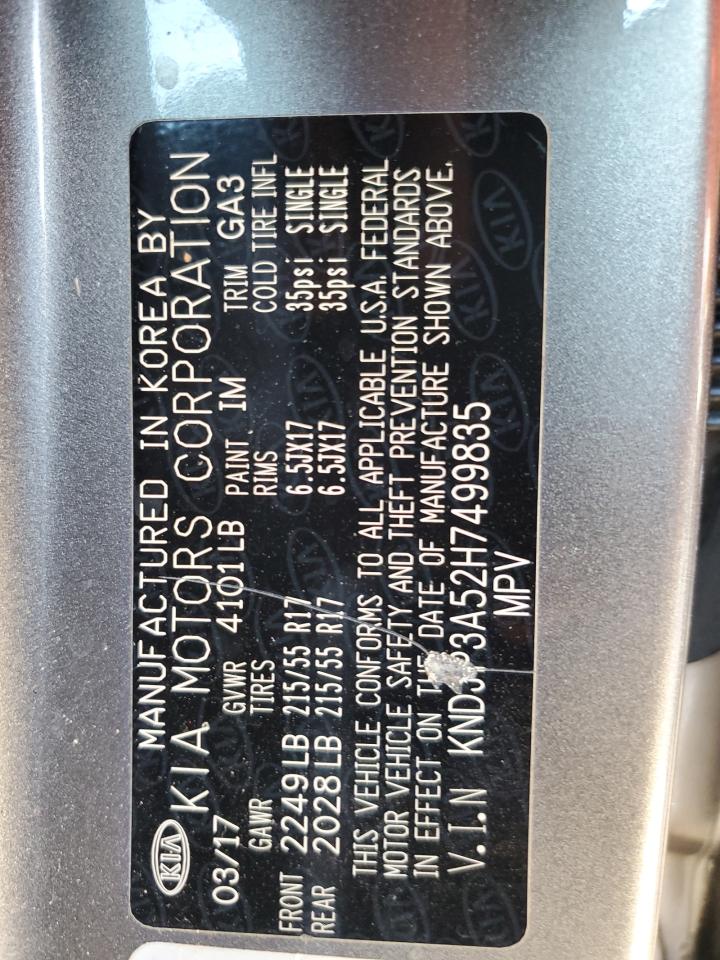 Колір СірийЦиліндри 4VIN KNDJP3A52H7499835Стан НевідомоУшкодження Передня або задня
