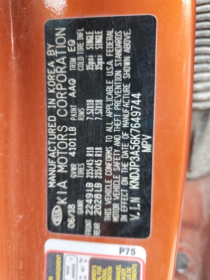2019 KIA SOUL - KNDJP3A56K7649744, колір - Апельсиновий, 2.0, Бензин, із США