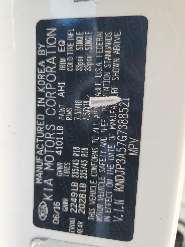 2016 KIA SOUL - KNDJP3A57G7388521, колір - Білий, 2.0, Бензин, із США