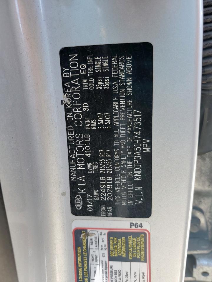 Колір СрібнийЦиліндри 4VIN KNDJP3A51H7473517Стан НевідомоУшкодження НезначніДата аукціона 2025-10-09