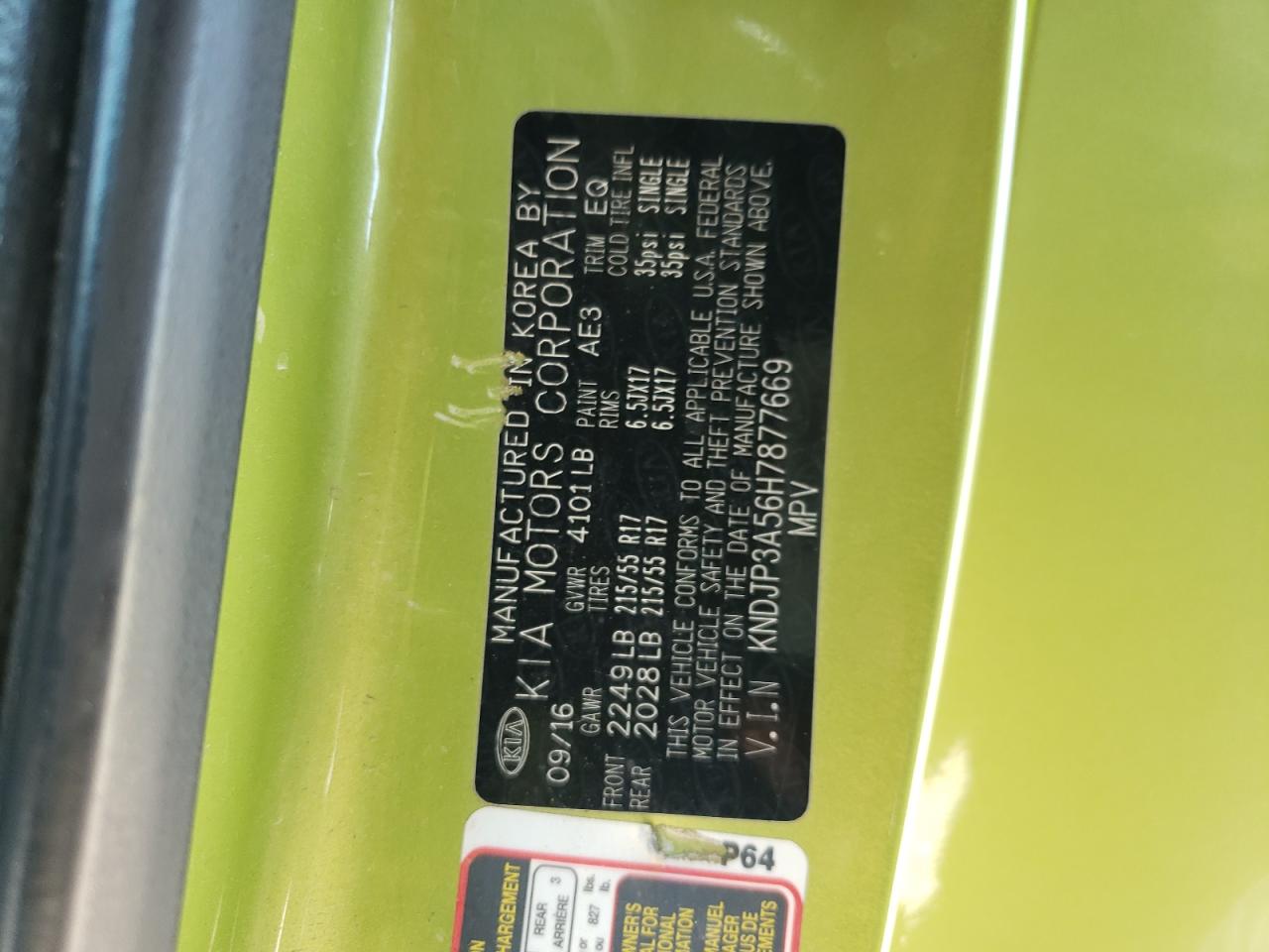 2017 KIA SOUL - KNDJP3A56H7877669, колір - Зелений, 2.0, Бензин, із США