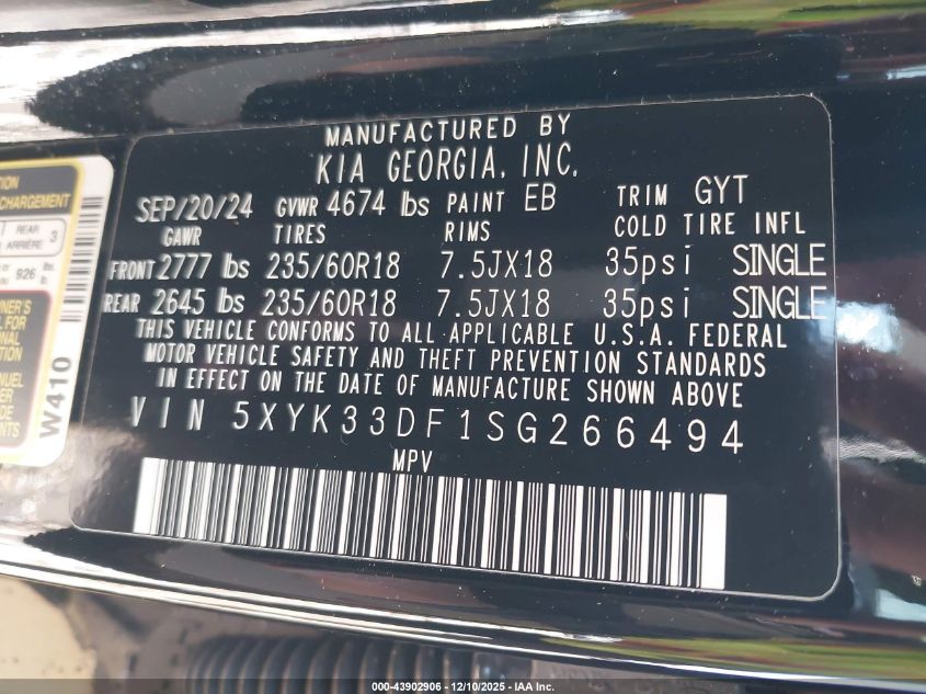 2025 KIA SPORTAGE - 5XYK33DF1SG266494, колір - Чорний, 2.5, Бензин, Передній привід із США