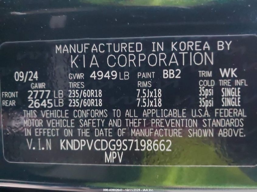 Колір СинійЦиліндри 4Привід Повний привідVIN KNDPVCDG9S7198662Стан Заводиться та їде (перевірено)Ушкодження Права сторона
