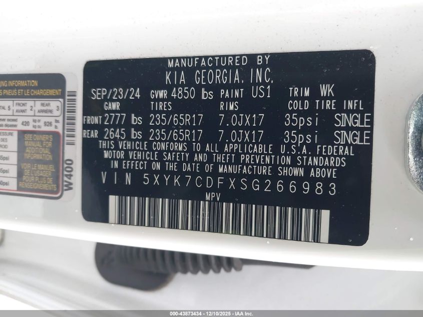 2025 KIA SPORTAGE - 5XYK7CDFXSG266983, колір - Білий, 2.5, Бензин, Повний привід із США
