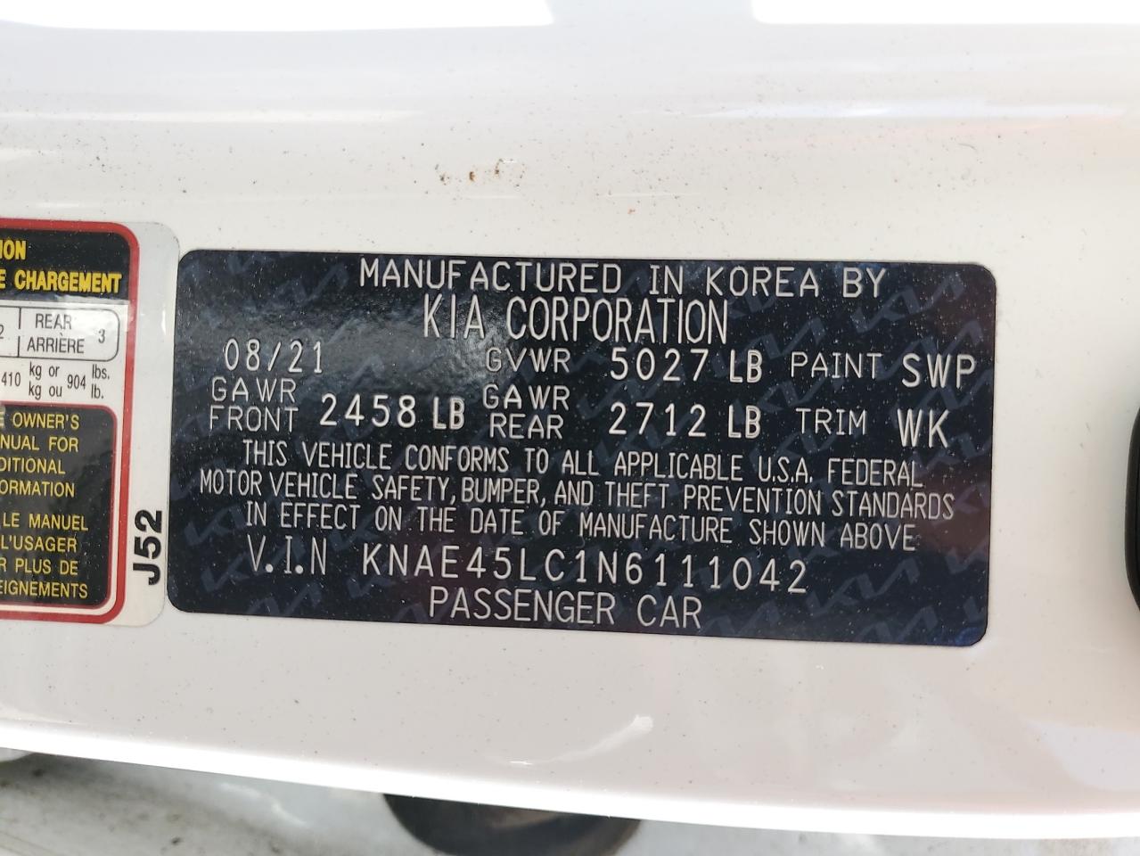 2022 KIA STINGER - KNAE45LC1N6111042, колір - Білий, 3.3, Бензин, Задній привід із США