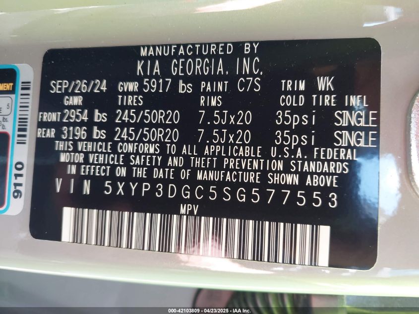 2025 KIA TELLURIDE - 5XYP3DGC5SG577553, колір - Сірий, 3.8, Бензин, Повний привід із США