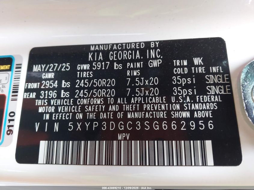 2025 KIA TELLURIDE - 5XYP3DGC3SG662956, колір - Білий, 3.8, Бензин, Повний привід із США