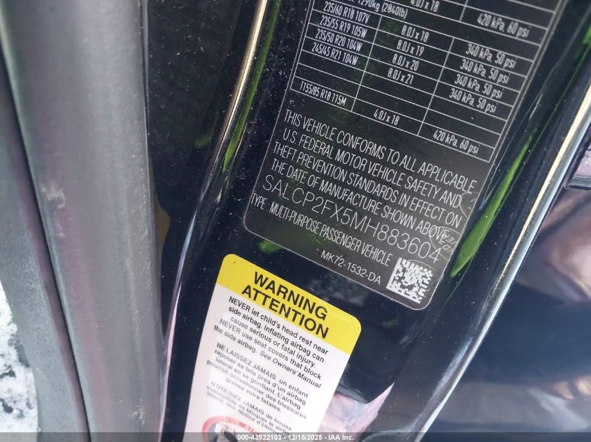 2021 LAND ROVER DISCOVERY - SALCP2FX5MH883604, колір - Чорний, 2.0, Бензин, Повний привід із США