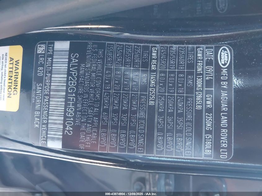 2015 LAND ROVER RANGE ROVER EVOQUE - SALVP2BG1FH991042, колір - Чорний, 2.0, Бензин, Повний привід із США