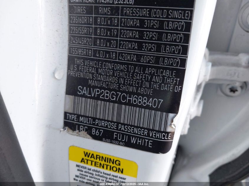 Колір БілийЦиліндри 4Привід Повний привідVIN SALVP2BG7CH688407Стан Заводиться та їде (перевірено)Ушкодження Передня або задня