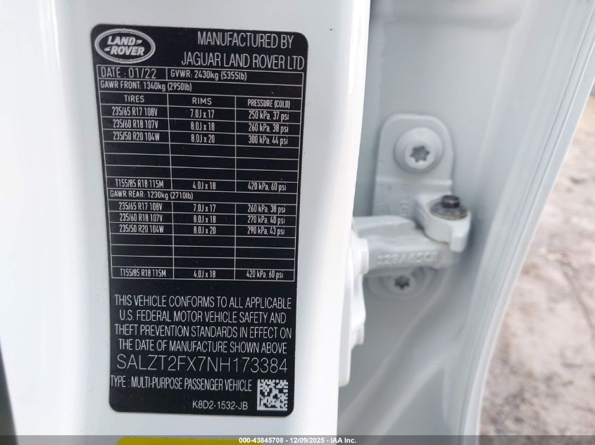 2022 LAND ROVER RANGE ROVER EVOQUE - SALZT2FX7NH173384, колір - Білий, 2.0, Бензин, Повний привід із США