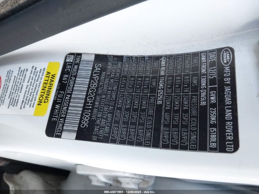 2016 LAND ROVER RANGE ROVER EVOQUE - SALVP2BG2GH110995, колір - Білий, 2.0, Бензин, Повний привід із США