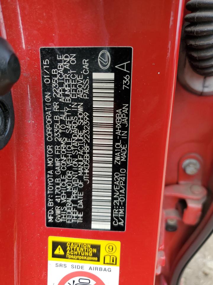 2015 LEXUS CT 200H - JTHKD5BH8F2232399, колір - Червоний, 1.8, Гібрид, із США