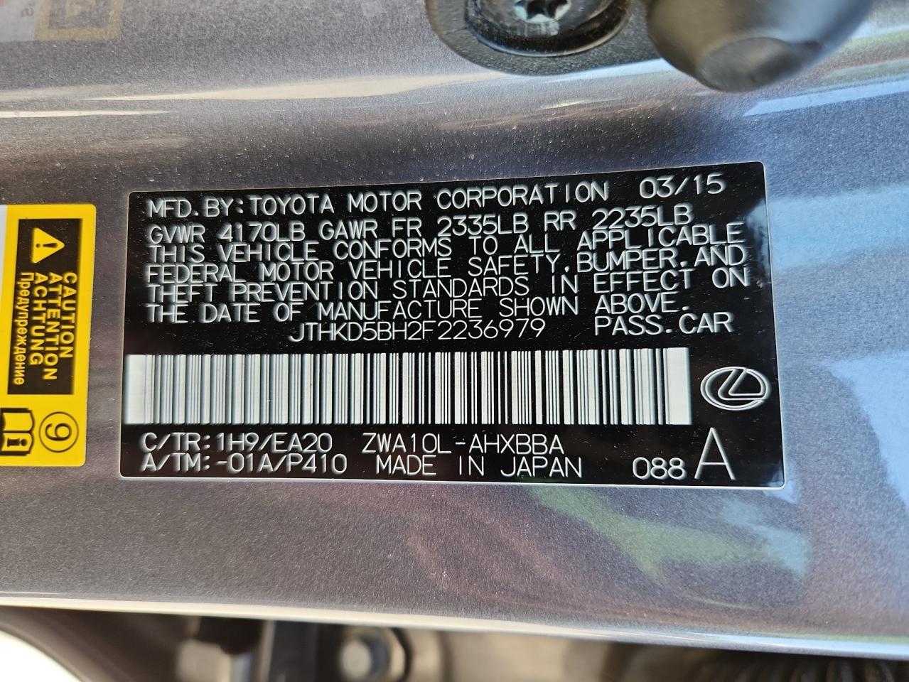 2015 LEXUS CT 200H - JTHKD5BH2F2236979, колір - Сірий, 1.8, Гібрид, із США