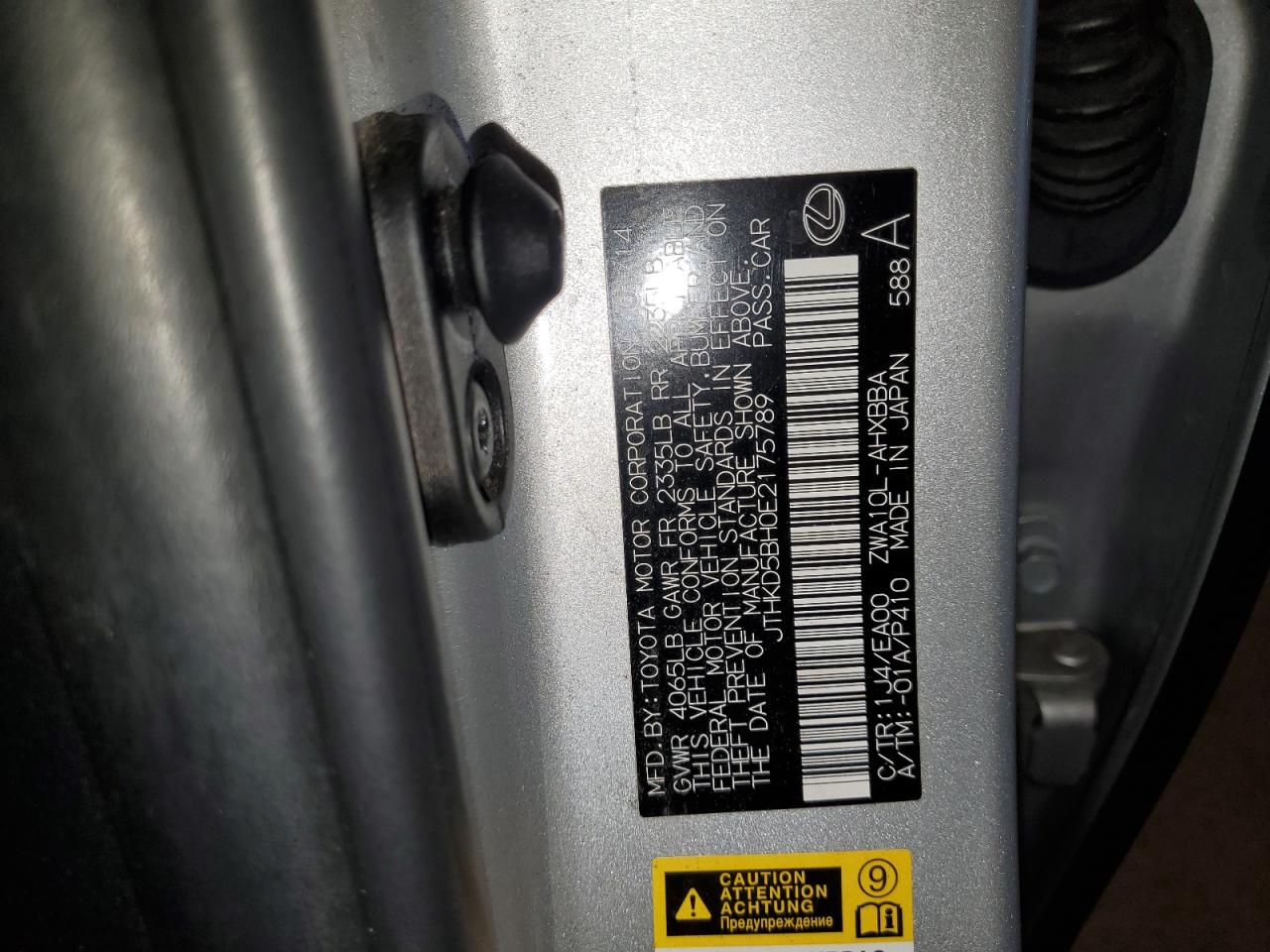 2014 LEXUS CT 200H - JTHKD5BH0E2175789, колір - Срібний, 1.8, Гібрид, із США