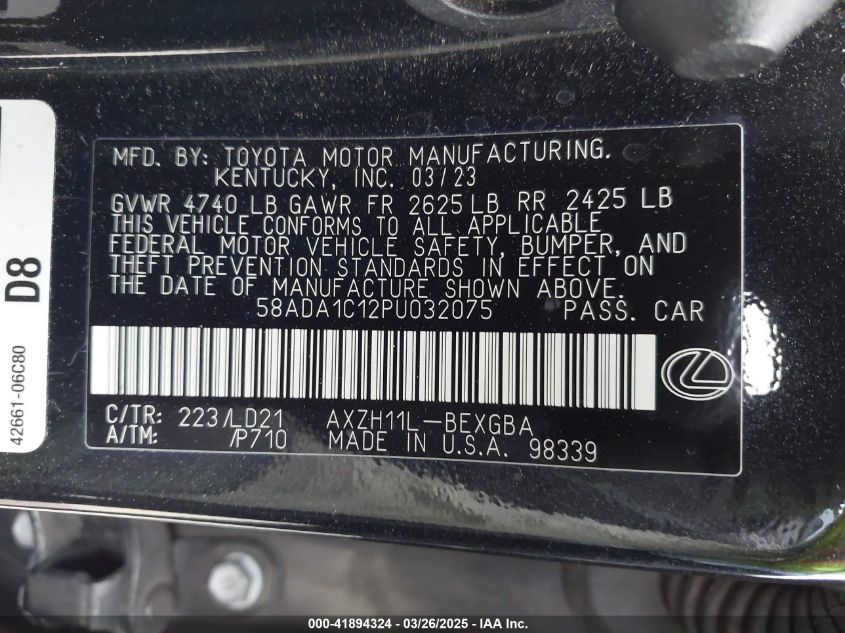 2023 LEXUS ES 300H - 58ADA1C12PU032075, колір - Чорний, 2.5, Гібрид, Передній привід із США