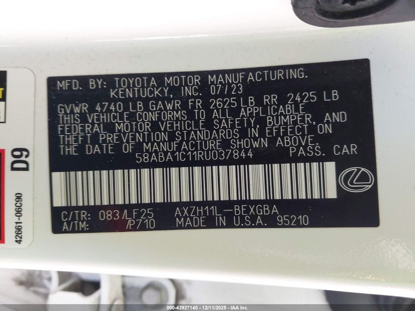 2024 LEXUS ES 300H - 58ABA1C11RU037844, колір - Білий, 2.5, Гібрид, Передній привід із США