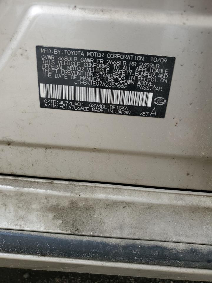 2010 LEXUS ES 350 - JTHBK1EG7A2353662, колір - Золотий, 3.5, Бензин, із США