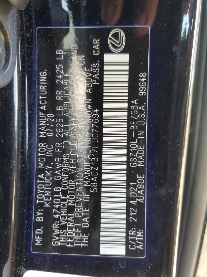 2020 LEXUS ES 350 - 58ADZ1B17LU077694, колір - Чорний, 3.5, Бензин, із США