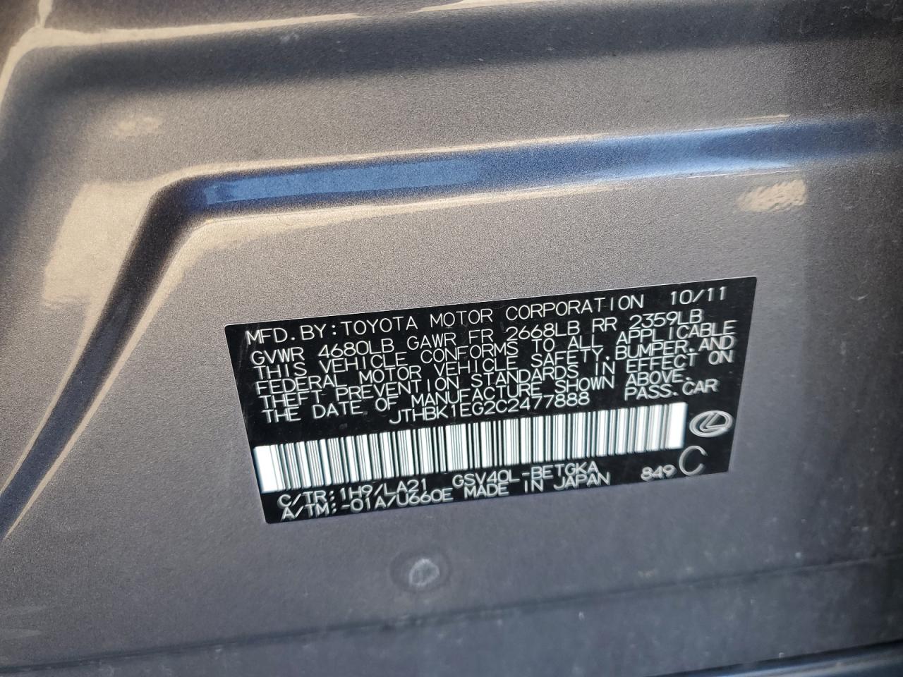 2012 LEXUS ES 350 - JTHBK1EG2C2477888, колір - Деревне вугілля, 3.5, Бензин, із США