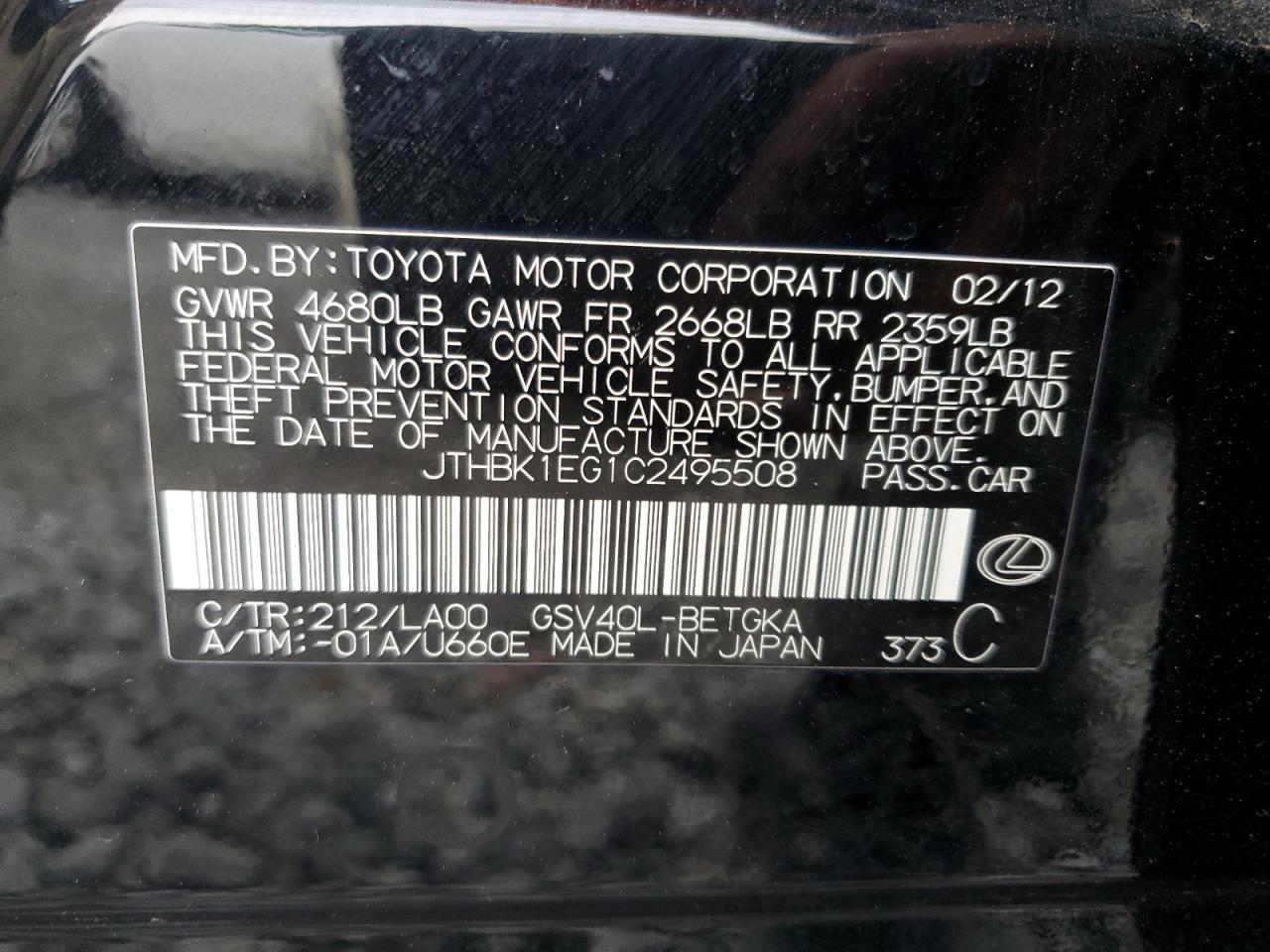 2012 LEXUS ES 350 - JTHBK1EG1C2495508, колір - Чорний, 3.5, Бензин, із США