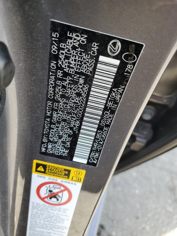 2016 LEXUS ES 350 - JTHBK1GG0G2224586, колір - Сірий, 3.5, Бензин, із США