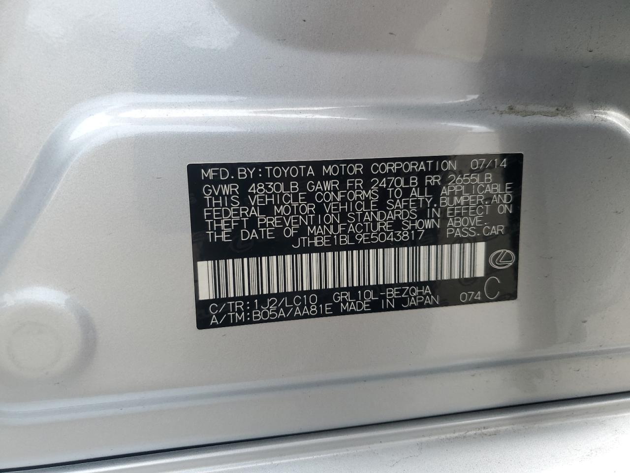 Колір СрібнийЦиліндри 6Привід Задній привідVIN JTHBE1BL9E5043817Стан Заводиться та їде (перевірено)Ушкодження ЗадняДата аукціона 2025-10-29
