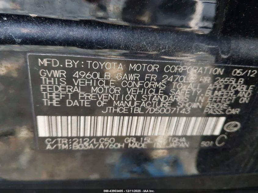 Колір ЧорнийЦиліндри 6Привід Повний привідVIN JTHCE1BL7D5007143Стан Заводиться та їде (перевірено)Ушкодження Передня права