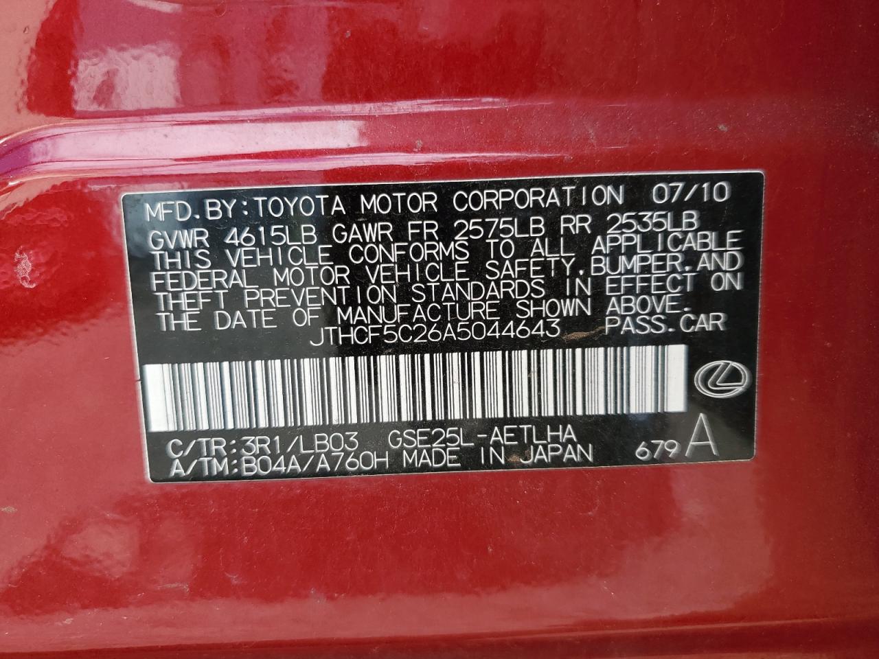 2010 LEXUS IS 250 - JTHCF5C26A5044643, колір - Червоний, 2.5, Бензин, Повний привід із США