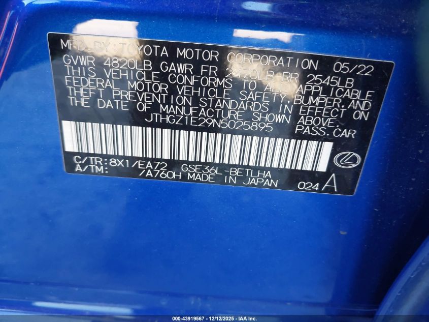 2022 LEXUS IS 350 - JTHGZ1E29N5025895, колір - Синій, 3.5, Бензин, Повний привід із США