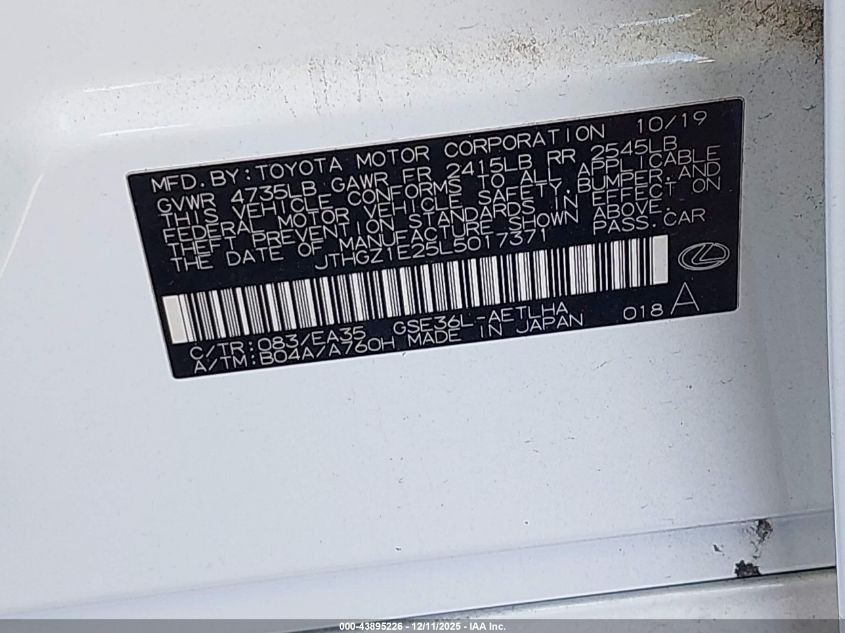 2020 LEXUS IS 350 - JTHGZ1E25L5017371, колір - Білий, 3.5, Бензин, Повний привід із США