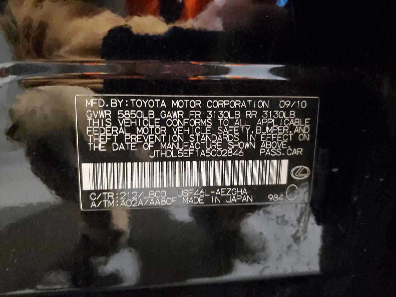 Колір ЧорнийЦиліндри 8Привід Повний привідVIN JTHDL5EF1A5002846Стан Заводиться та їде (перевірено)Ушкодження Передня або задняДата аукціона 2025-11-12