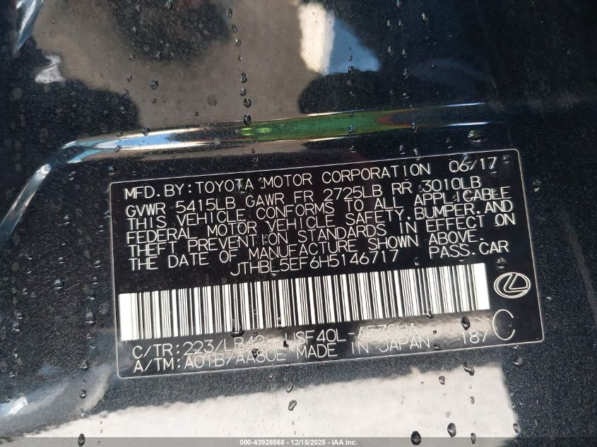 2017 LEXUS LS 460 - JTHBL5EF6H5146717, колір - Чорний, 4.6, Бензин, Задній привід із США