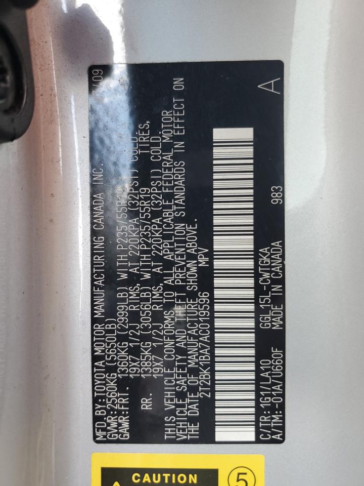 2010 LEXUS RX 350 - 2T2BK1BA7AC019596, колір - Срібний, 3.5, Бензин, Повний привід із США