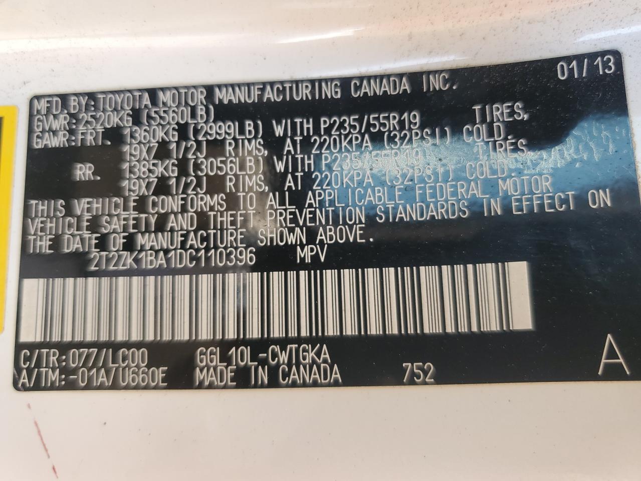 Колір БілийЦиліндри 6VIN 2T2ZK1BA1DC110396Стан Заводиться та їде (перевірено)Ушкодження Задня