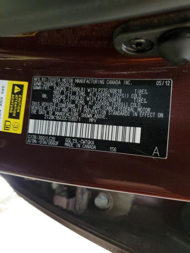 Колір БургундіяЦиліндри 6Привід Повний привідVIN 2T2BK1BA2DC158071Стан НевідомоУшкодження Передня або задня