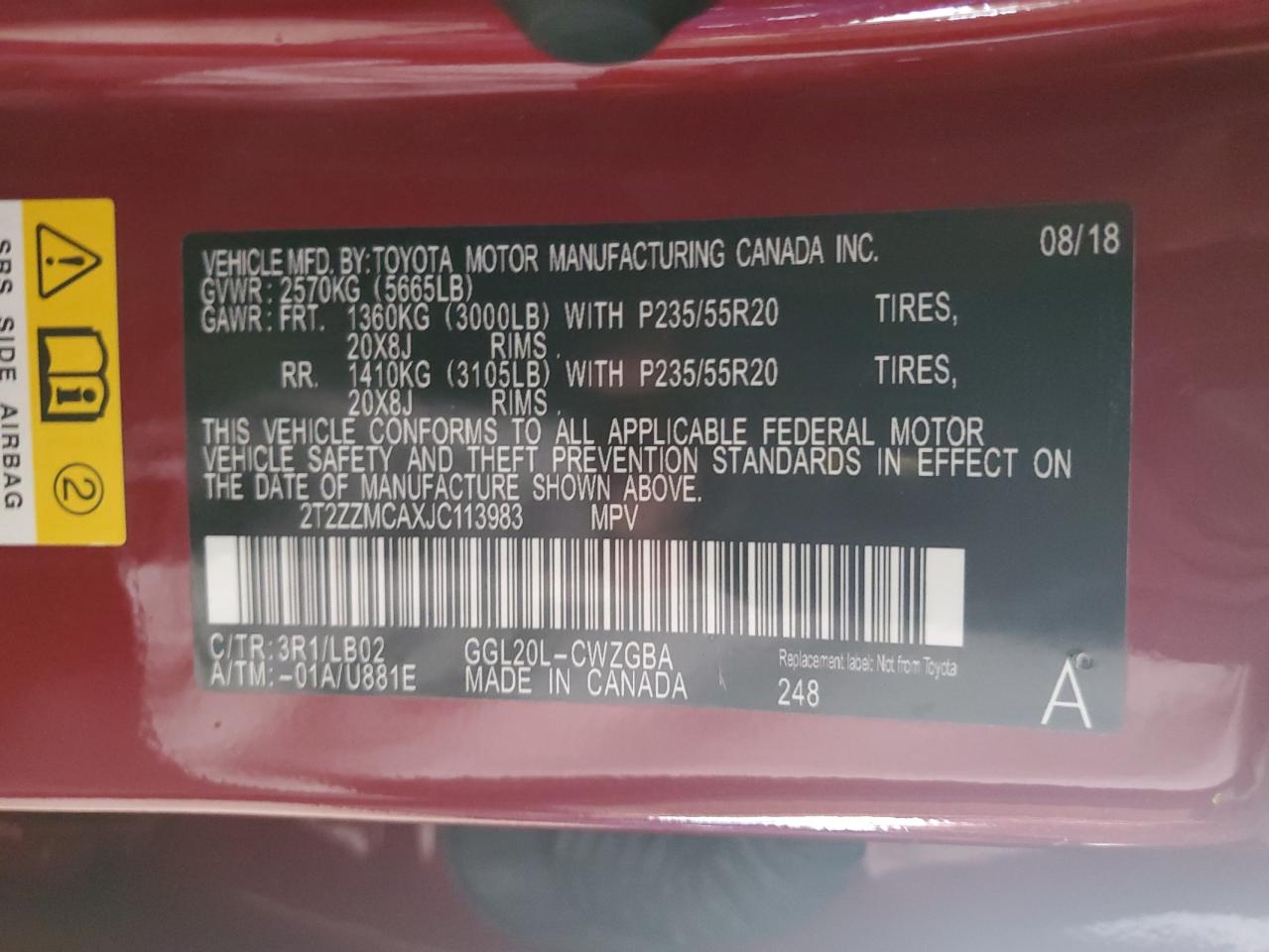 Колір БургундіяЦиліндри 6VIN 2T2ZZMCAXJC113983Стан Заводиться та їде (перевірено)Ушкодження Передня або задняДата аукціона 2025-11-12