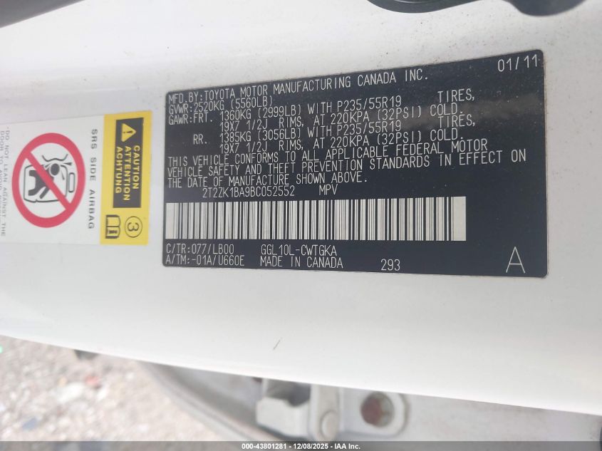 Колір БілийЦиліндри 6Привід Передній привідVIN 2T2ZK1BA9BC052552Стан Заводиться та їде (перевірено)Ушкодження Передня і задня