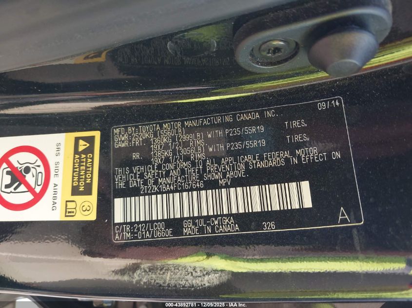 Колір ЧорнийЦиліндри 6Привід Передній привідVIN 2T2ZK1BA4FC167646Стан СтаціонарноУшкодження Передня ліва