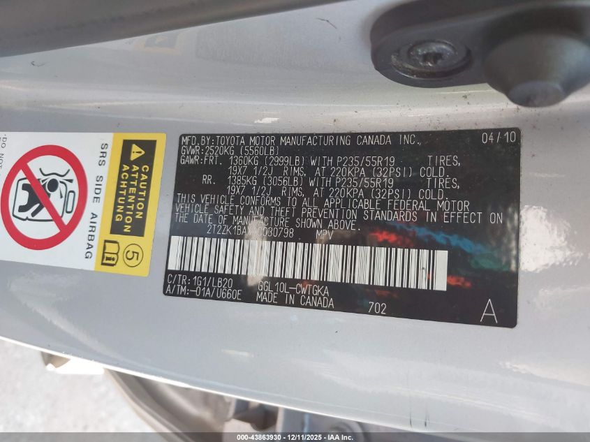 2010 LEXUS RX 350 - 2T2ZK1BAXAC030798, колір - Срібний, 3.5, Бензин, Передній привід із США