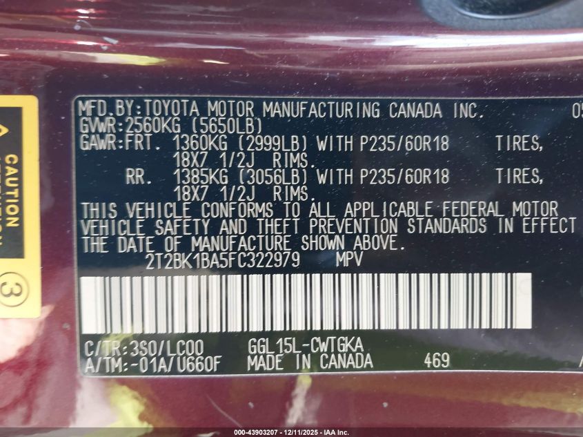 Колір БургундіяЦиліндри 6Привід Повний привідVIN 2T2BK1BA5FC322979Стан Заводиться та їде (перевірено)Ушкодження Передня або задня