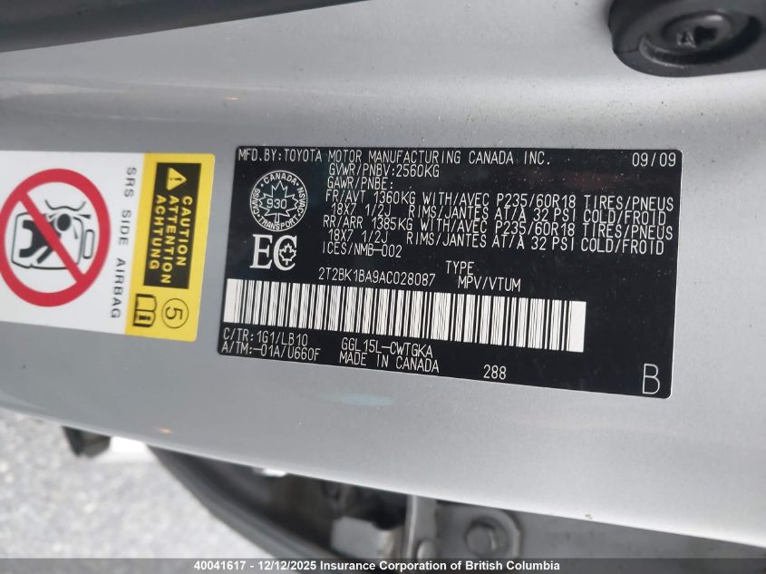 Колір СрібнийЦиліндри 6Привід Повний привідVIN 2T2BK1BA9AC028087Стан Заводиться та їде (перевірено)Ушкодження ЗадняДата аукціона 2025-12-15