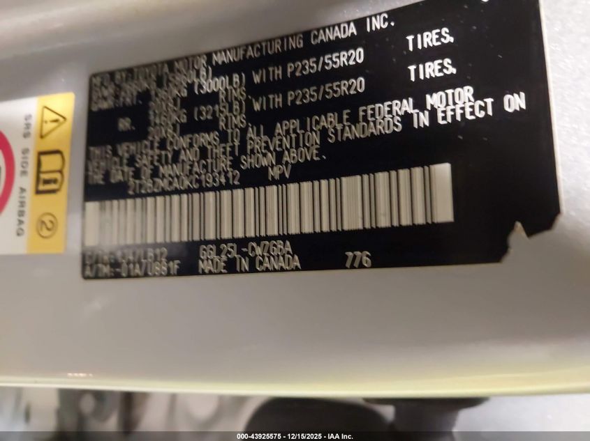 Колір СрібнийЦиліндри 6Привід Повний привідVIN 2T2BZMCA0KC193412Стан Заводиться та їде (перевірено)Ушкодження Права сторона