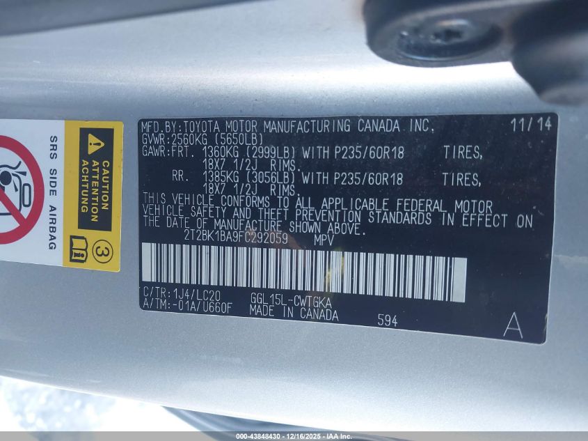 Колір СрібнийЦиліндри 6Привід Повний привідVIN 2T2BK1BA9FC292059Стан НевідомоУшкодження По всьому авто