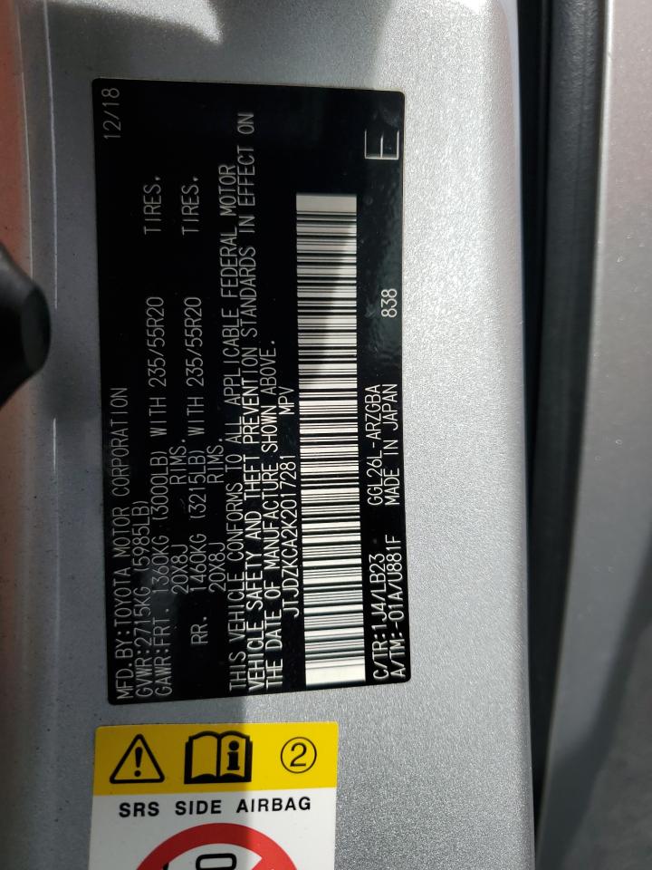 Колір СрібнийЦиліндри 6Привід Повний привідVIN JTJDZKCA2K2017281Стан Заводиться та їде (перевірено)Ушкодження Передня або задняДата аукціона 2025-10-07
